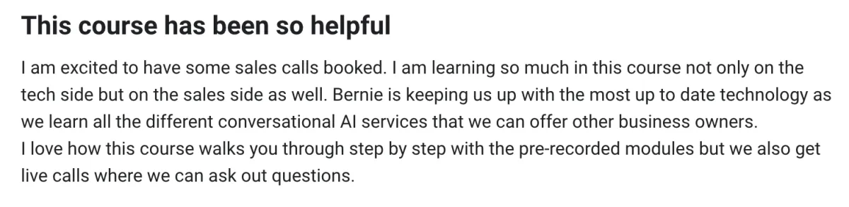 Over 150 In-Depth Video Modules: Accessible step-by-step tutorials that cover every stage of building your AI service business